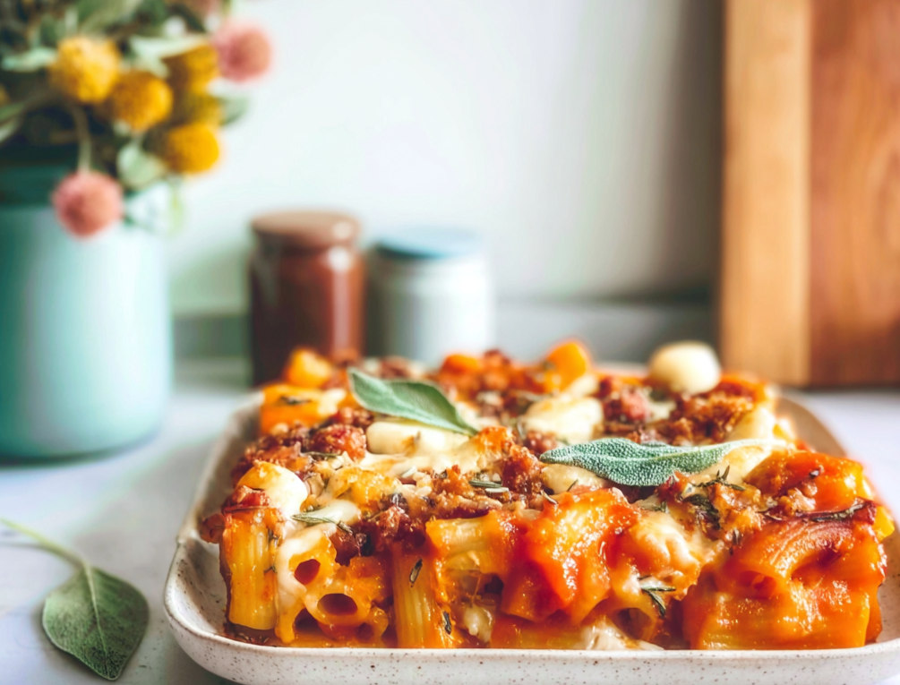 Yes! This dish freezes well. To freeze leftovers of your Pasta Bake with Pumpkin Tomato Sauce, allow it to cool completely before transferring it to an airtight container or freezer bag. It can be stored in the freezer for up to three months. When you’re ready to enjoy it again, simply thaw overnight in the refrigerator before reheating in the oven.