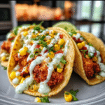 Fried Chicken Street Corn Tacos with Jalapeño Lime Ranch stand out due to their combination of textures and flavors. The crispy fried chicken provides crunch while grilled corn adds sweetness. The homemade jalapeño lime ranch dressing introduces a spicy kick that complements both components perfectly. These tacos blend traditional Mexican street food elements with classic fried chicken, making them deliciously unique.