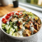 - Assemble bowls: Layer cooked quinoa as the base in serving bowls. Top with sliced grilled chicken and add diced cucumbers, halved cherry tomatoes, and slivers of red onion. Drizzle generously with tzatziki sauce.
