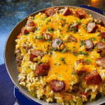 In summary, Cheesy Sausage & Rice is a delightful dish that combines flavorful sausage with creamy cheese and fluffy rice. It’s quick to prepare and versatile enough to adapt with various ingredients according to your taste. Whether you’re making this dish on a busy weeknight or prepping it ahead for later enjoyment, it’s sure to satisfy everyone’s appetite. Enjoy this comforting meal that brings warmth and satisfaction with every bite!