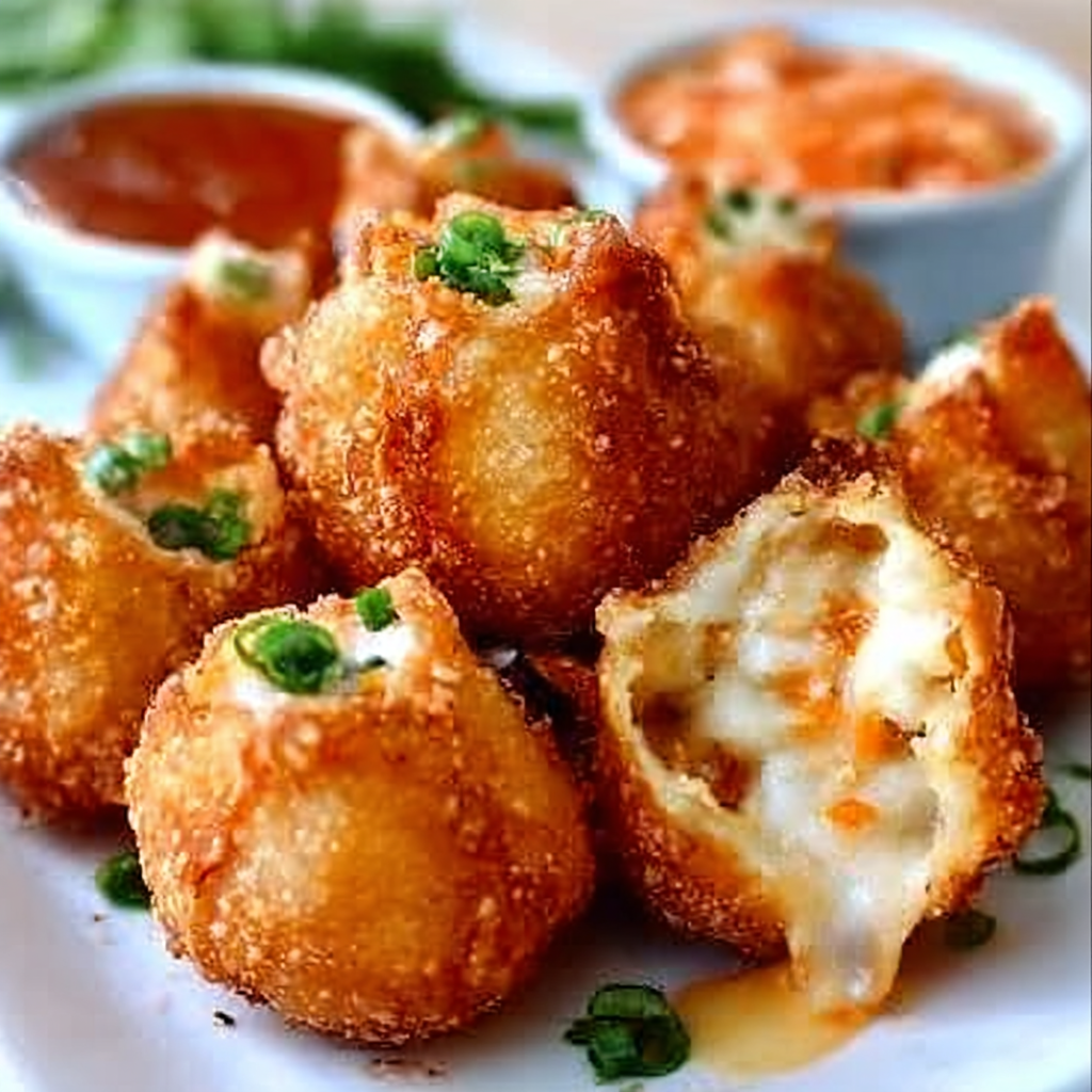 Crispy Crab Rangoon Bombs with Creamy Filling are a delightful fusion of flavors and textures. These delicious bites feature a crispy exterior made from wonton wrappers and a rich, creamy filling that combines crab meat, cream cheese, and various seasonings. They make for an excellent appetizer or party snack, appealing to seafood lovers and those who enjoy a crunchy treat. The combination of the crispy outside and the creamy filling creates an irresistible taste sensation that’s hard to resist.