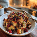 This stuffing recipe brings together the nutty flavor of pecans, tart cranberries, and aromatic herbs to create a side dish that complements any Thanksgiving feast. Imagine serving this fluffy, flavorful stuffing alongside turkey, mashed potatoes, and gravy. It’s perfect for both traditional celebrations and modern twists on holiday classics. With layers of flavor and texture in every bite, you’ll want to make this sumptuous dish part of your holiday traditions for years to come.