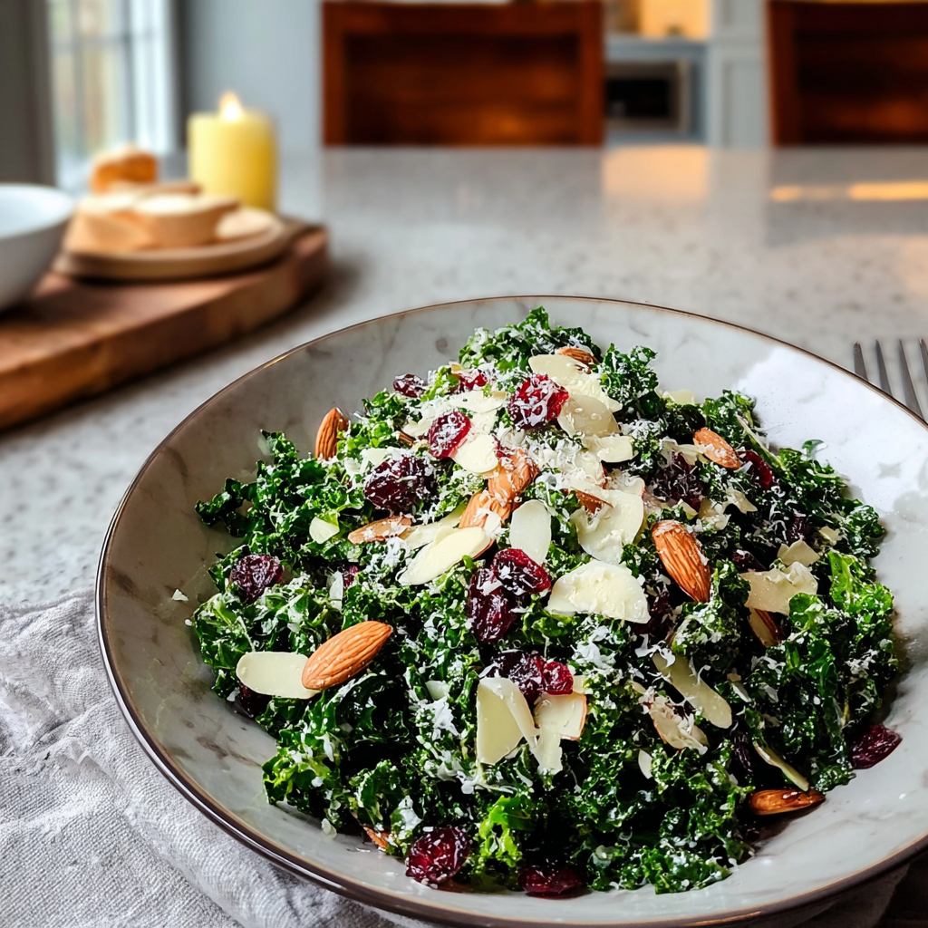 Delicious Simple Kale Salad with Parmesan & Cranberries