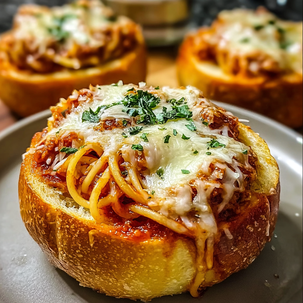 Irresistible Spaghetti Garlic Bread Bowls Recipe Delight