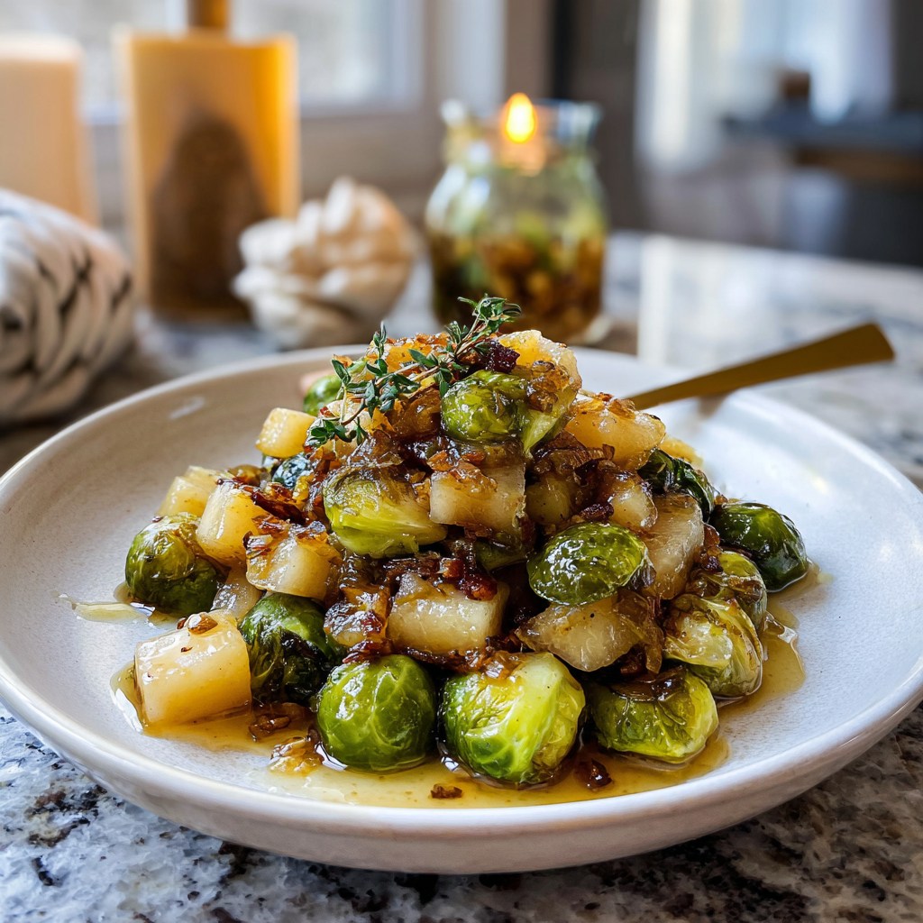 Delicious Brussels Sprouts with White Balsamic-Pear Chutney