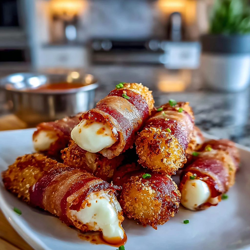 Spicy Nashville Hot Bacon Wrapped Mozzarella Sticks
